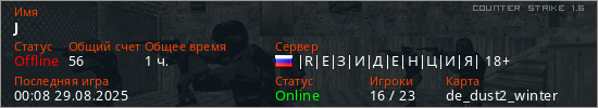 Играет на Counter Strike 1.6 сервере. Страна: РоссияПервый раз замечен 17:53 26.06.2022