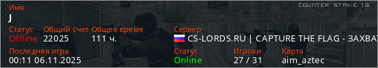 Играет на Counter Strike 1.6 сервере. Страна: РоссияПервый раз замечен 16:09 10.09.2021