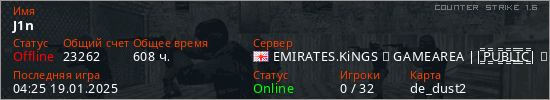 Играет на Counter Strike 1.6 сервере. Страна: ВеликобританияПервый раз замечен 12:46 14.12.2020