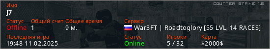Играет на Counter Strike 1.6 сервере. Страна: РоссияПервый раз замечен 19:41 05.01.2024