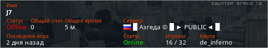 Последний раз был в сети 2 дня назад Игрок с таким ником замечен на 16 серверах