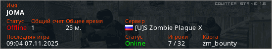 Последний раз был в сети 09:04 07.11.2025 Игрок с таким ником замечен на 15 серверах