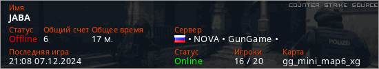 Играет на Counter Strike Source сервере. Страна: РоссияПервый раз замечен 16:27 01.10.2023