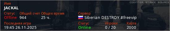 Играет на Counter Strike Source сервере. Страна: РоссияПервый раз замечен 13:29 08.02.2023