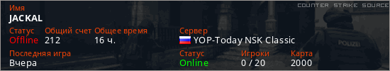 Играет на Counter Strike Source сервере. Страна: РоссияПервый раз замечен 19:05 02.06.2023