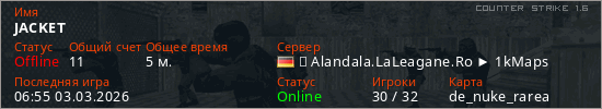 Играет на Counter Strike 1.6 сервере. Страна: ГерманияПервый раз замечен 06:49 03.03.2026
