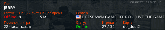 Играет на Counter Strike 1.6 сервере. Страна: СШАПервый раз замечен 01:00 09.04.2026