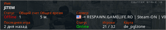 Играет на Counter Strike 1.6 сервере. Страна: СШАПервый раз замечен 07:29 29.12.2025