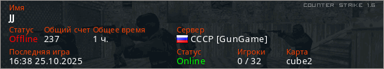 Играет на Counter Strike 1.6 сервере. Страна: РоссияПервый раз замечен 15:13 17.05.2023