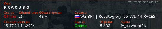 Играет на Counter Strike 1.6 сервере. Страна: РоссияПервый раз замечен 10:34 12.01.2022