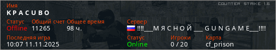 Последний раз был в сети 10:07 11.11.2025 Игрок с таким ником замечен на 49 серверах
