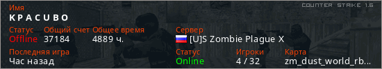 Играет на Counter Strike 1.6 сервере. Страна: РоссияПервый раз замечен 17:04 22.04.2021