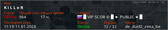 Играет на Counter Strike 1.6 сервере. Страна: РоссияПервый раз замечен 09:39 16.08.2025