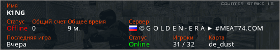 Последний раз был в сети Вчера Игрок с таким ником замечен на 29 серверах