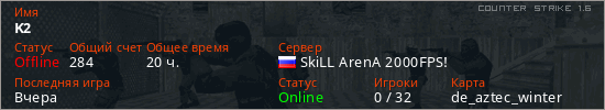 Играет на Counter Strike 1.6 сервере. Страна: РоссияПервый раз замечен 11:27 08.08.2022