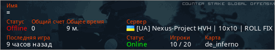 Играет на Counter Strike Global Offensive сервере. Страна: УкраинаПервый раз замечен 01:17 07.03.2026