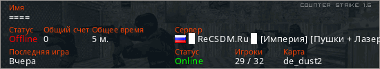 Последний раз был в сети Вчера Игрок с таким ником замечен на 14 серверах