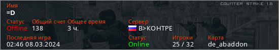 Последний раз был в сети 02:46 08.03.2024 Игрок с таким ником замечен на 27 серверах