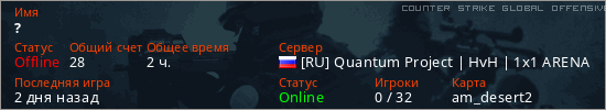 Играет на Counter Strike Global Offensive сервере. Страна: РоссияПервый раз замечен 13:11 25.03.2026
