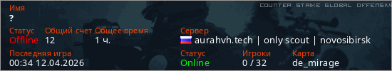 Играет на Counter Strike Global Offensive сервере. Страна: РоссияПервый раз замечен 23:41 28.03.2026