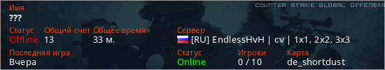 Играет на Counter Strike Global Offensive сервере. Страна: РоссияПервый раз замечен 00:45 09.11.2025