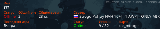 Играет на Counter Strike Global Offensive сервере. Страна: РоссияПервый раз замечен 19:46 26.11.2025