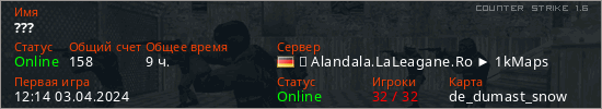 Играет на Counter Strike 1.6 сервере. Страна: ГерманияПервый раз замечен 12:14 03.04.2024
