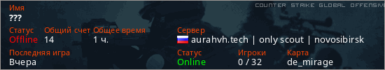 Играет на Counter Strike Global Offensive сервере. Страна: РоссияПервый раз замечен 18:10 28.03.2026