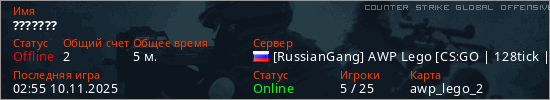 Играет на Counter Strike Global Offensive сервере. Страна: РоссияПервый раз замечен 02:19 10.11.2025