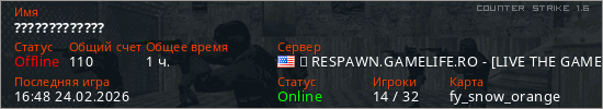 Играет на Counter Strike 1.6 сервере. Страна: СШАПервый раз замечен 17:20 20.02.2026