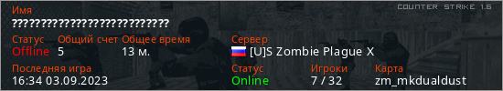 Играет на Counter Strike 1.6 сервере. Страна: РоссияПервый раз замечен 19:24 28.08.2023