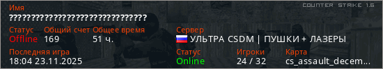 Последний раз был в сети 18:04 23.11.2025 Игрок с таким ником замечен на 15 серверах