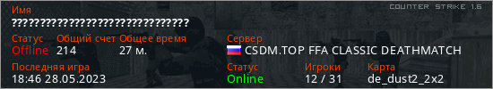 Последний раз был в сети 18:46 28.05.2023 Игрок с таким ником замечен на 15 серверах