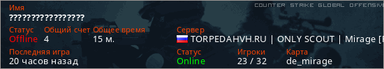 Играет на Counter Strike Global Offensive сервере. Страна: РоссияПервый раз замечен 23:41 12.03.2026