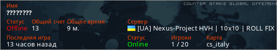Играет на Counter Strike Global Offensive сервере. Страна: УкраинаПервый раз замечен 16:00 28.01.2026