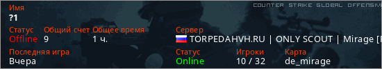 Последний раз был в сети Вчера Игрок с таким ником замечен на 10 серверах