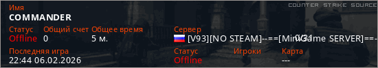 Играет на Counter Strike Source сервере. Страна: РоссияПервый раз замечен 22:42 06.02.2026