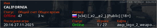 Последний раз был в сети 20:16 27.11.2025 Игрок с таким ником замечен на 11 серверах