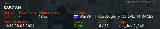 Последний раз был в сети 14:49 08.05.2024 Игрок с таким ником замечен на 21 сервере