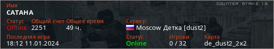 Играет на Counter Strike 1.6 сервере. Страна: РоссияПервый раз замечен 21:26 24.04.2021