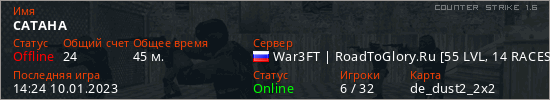 Играет на Counter Strike 1.6 сервере. Страна: РоссияПервый раз замечен 09:59 17.01.2021
