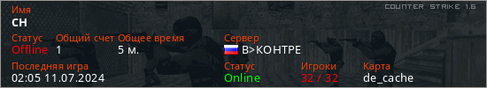 Играет на Counter Strike 1.6 сервере. Страна: РоссияПервый раз замечен 02:03 11.07.2024
