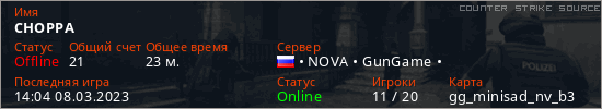 Играет на Counter Strike Source сервере. Страна: РоссияПервый раз замечен 13:44 08.03.2023