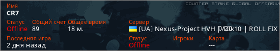 Играет на Counter Strike Global Offensive сервере. Страна: УкраинаПервый раз замечен 20:54 28.04.2026