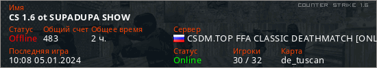 Играет на Counter Strike 1.6 сервере. Страна: РоссияПервый раз замечен 18:45 29.09.2021