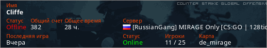 Играет на Counter Strike Global Offensive сервере. Страна: РоссияПервый раз замечен 00:34 30.09.2023