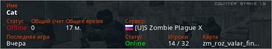 Играет на Counter Strike 1.6 сервере. Страна: РоссияПервый раз замечен 21:39 19.03.2026