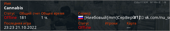 Последний раз был в сети 23:23 21.10.2022 Игрок с таким ником замечен на 10 серверах
