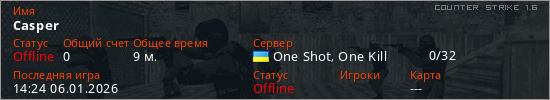 Играет на Counter Strike 1.6 сервере. Страна: УкраинаПервый раз замечен 12:09 04.01.2026