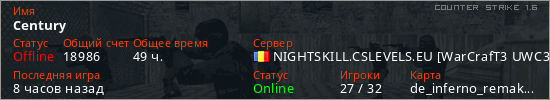 Последний раз был в сети 3 часа назад Игрок с таким ником замечен на 5 серверах